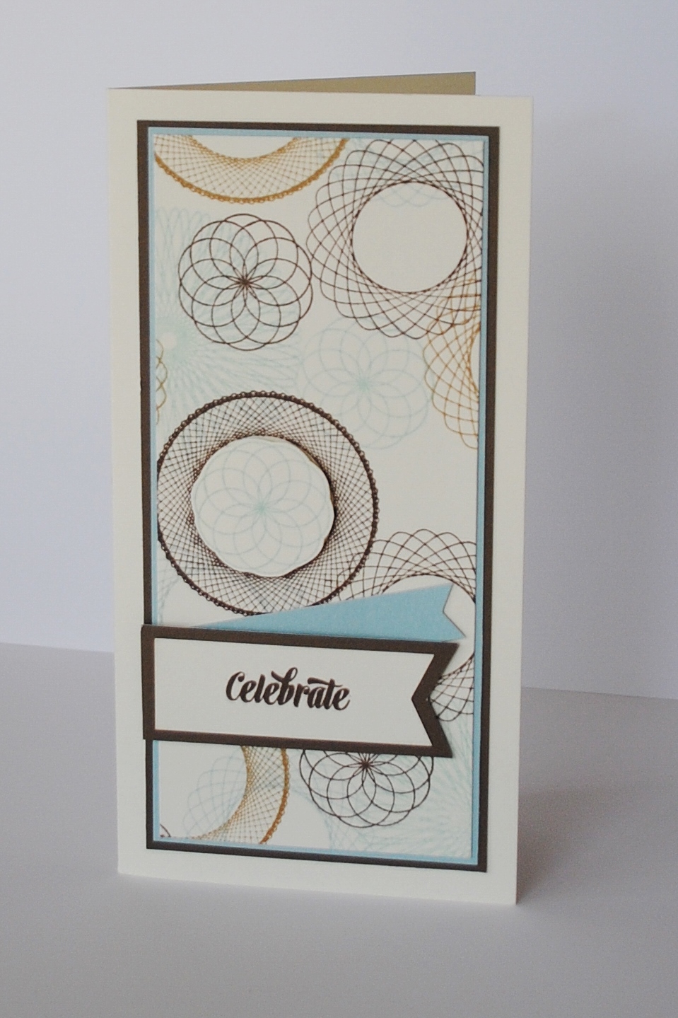 A tall spiral card using our Dizzy Circles Stamp set (C1610) with Glacier Ink, Dessert Ink and Cocoa Ink.