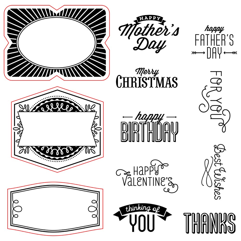 This months special Stamp of the Month set is the most versatile card makers stamp set. You will find yourself using it over and over with the different sentiments, which cover most festivities, and with the decorated titles the possibilities are endless!
