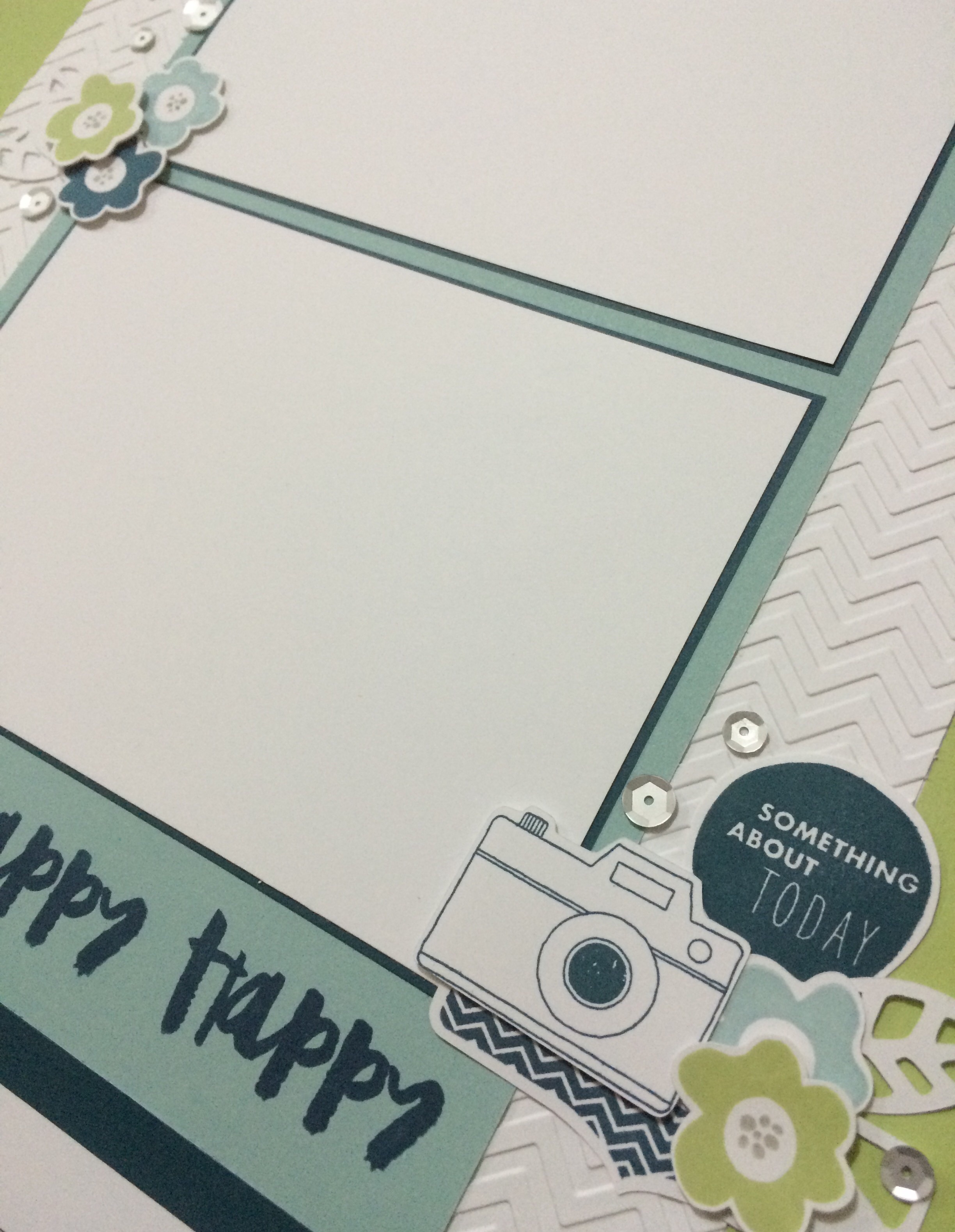 This layout is off the CTMH flyer for these awesome stamps which are only available this month. I added my own touch using the Chevron Embossing Folder for side borders and bunching the stamped embellishments together made for a bit of fun!